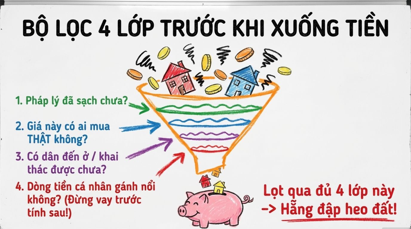 Một báo cáo địa phương gửi Bộ Xây dựng đầu năm 2026 cho thấy giao dịch tăng nhưng chủ yếu tập trung vào các dự án có hạ tầng tốt, hồ sơ pháp lý đầy đủ, rõ ràng. Đây là chi tiết rất quan trọng: cầu thật không mua mọi thứ, mà chọn rất kỹ. Nếu một khu vực tăng giá đồng loạt nhưng người mua thực chỉ đổ vào số ít sản phẩm đã hoàn thiện pháp lý và hạ tầng, phần còn lại rất dễ là giá kỳ vọng nhiều hơn giá trị sử dụng. Đó cũng là cách Phân biệt giá trị thật và giá ảo trong thực tế.