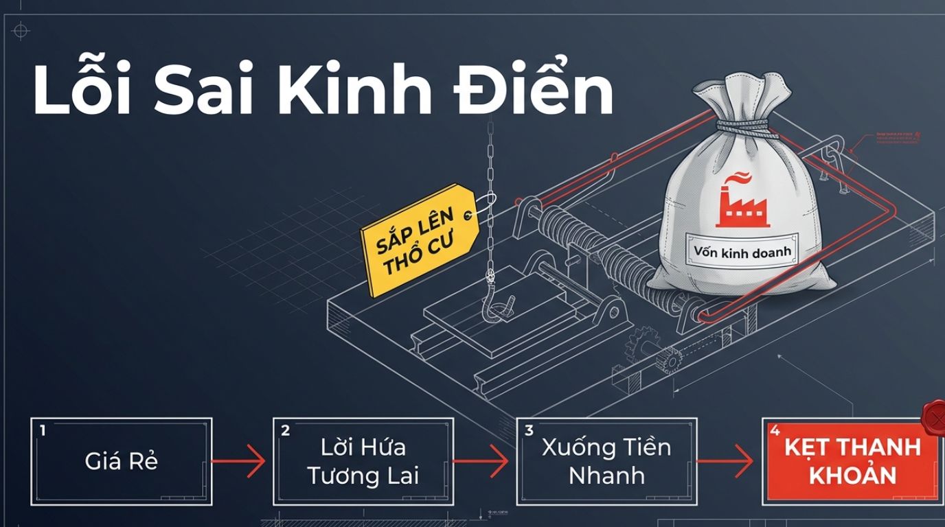 Kẹt vốn thường xảy ra trong ba tình huống. Một là mua đất chưa rõ quy hoạch, đến khi thị trường chậm lại thì người mua sau không dám xuống tiền. Hai là mua đất diện tích lớn, giá trị cao, nhưng tệp khách mua lại rất hẹp. Ba là dùng tiền kinh doanh hoặc tiền vay ngắn hạn để mua tài sản có thanh khoản dài hạn. Khi doanh nghiệp cần vốn xoay vòng, đất chưa bán được sẽ làm dòng tiền bị nghẽn.