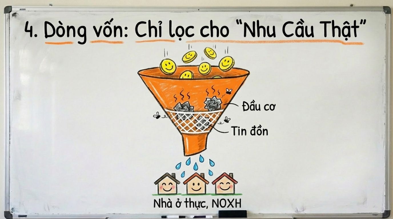 Thông điệp hiện nay khá rõ: kiểm soát chặt tín dụng bất động sản mang tính đầu cơ, tập trung hơn cho nhu cầu ở thực, nhà ở xã hội và phân khúc phù hợp thu nhập. Đây là điểm rất đáng chú ý, bởi cùng là vốn tín dụng nhưng vốn chảy vào nhà ở thật sẽ tạo nền bền hơn vốn chảy vào đất nền theo tin đồn. Nói cách khác, “nới” không đồng nghĩa với “thả”, và đây là khác biệt quyết định giữa phục hồi lành mạnh với sốt nóng ngắn hạn.