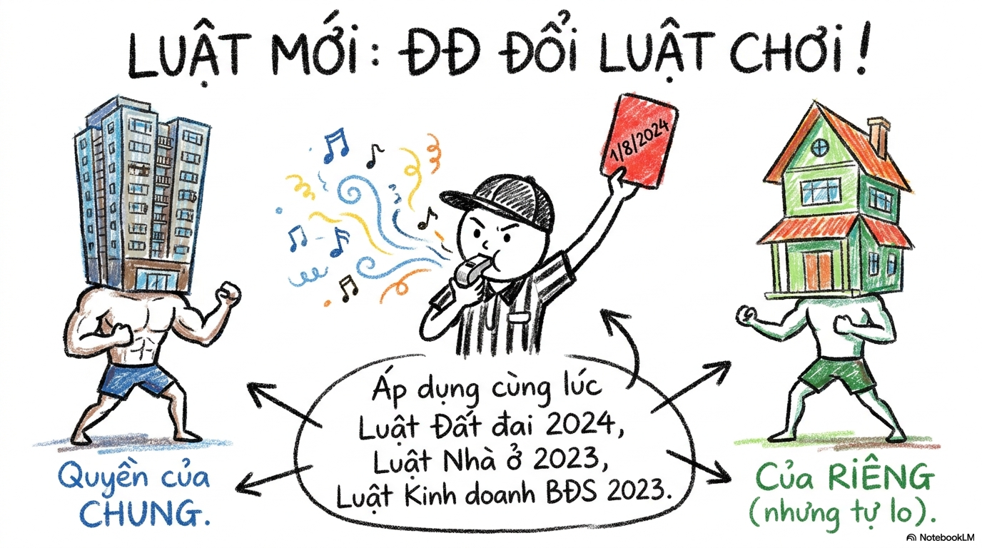 Theo khung pháp lý hiện hành, nhà ở riêng lẻ là nhà được xây trên một thửa đất ở riêng biệt, bao gồm nhà liền kề, biệt thự và nhà ở độc lập; còn nhà chung cư là nhà ở từ 2 tầng trở lên, có nhiều căn hộ, có phần sở hữu riêng, phần sở hữu chung và hạ tầng dùng chung. Đồng thời, Luật Đất đai 2024, Luật Nhà ở 2023 và Luật Kinh doanh bất động sản 2023 đã cùng có hiệu lực từ ngày 1/8/2024, nên đây là nền tảng pháp lý nên dùng để đánh giá tài sản ở thời điểm hiện nay.